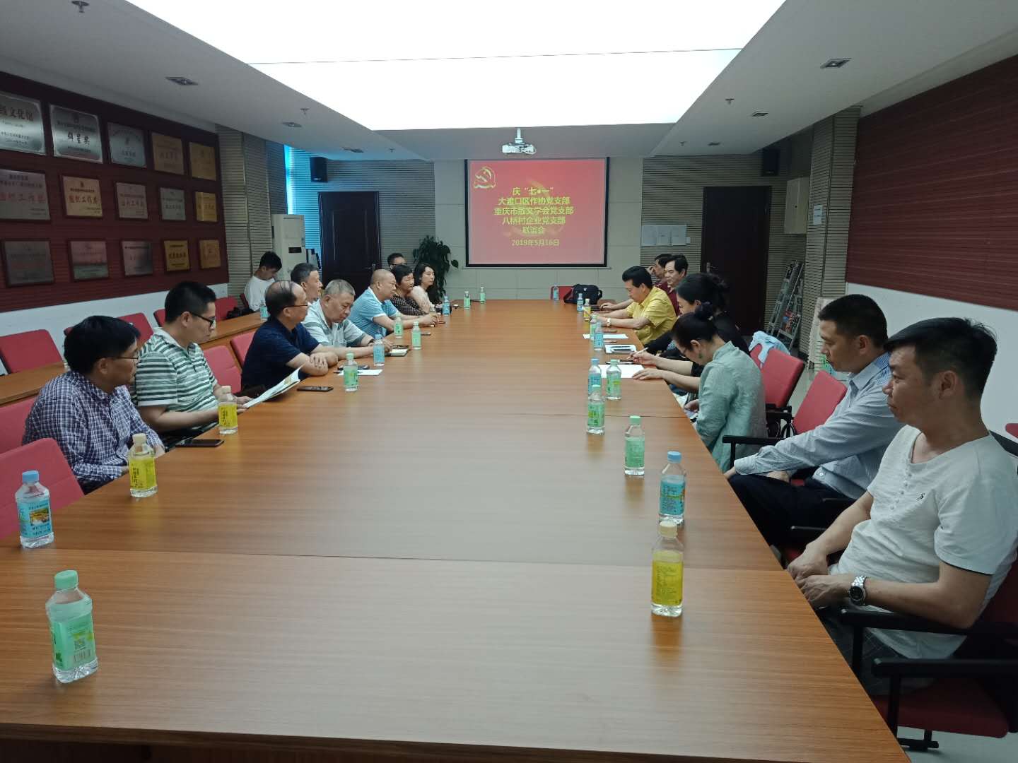5月16日,由重庆市散文学会党支部、大渡口区作协党支部、大渡口区八桥村村企业党支部主办的庆“七一”联谊会在大渡口区举行,重庆市散文学会会长、党支部书记刘建春,大渡口区作协党支部书记周祥先,八桥村企业党支部书记曾维国出席活动。来自重庆市散文学会党支部、大渡口区作协党支部的党员作家和大渡口区八桥村村企业党支部的党员参加活动。