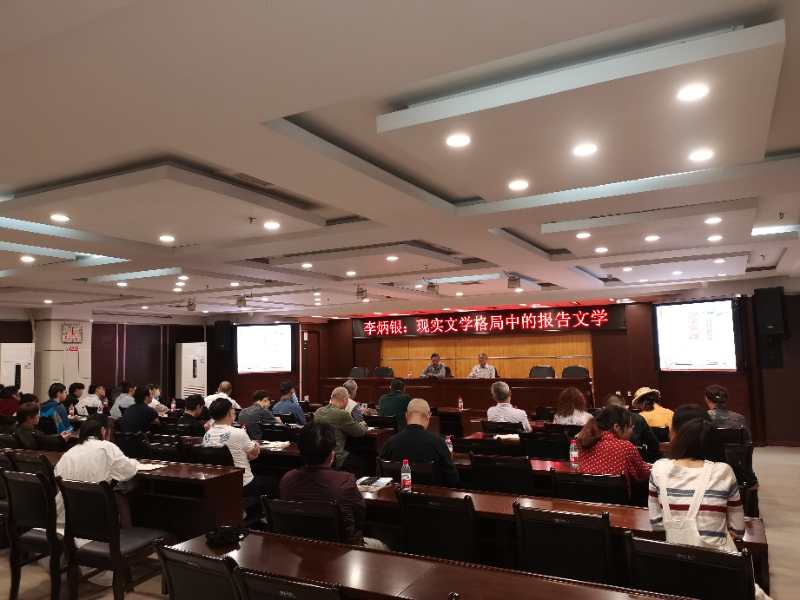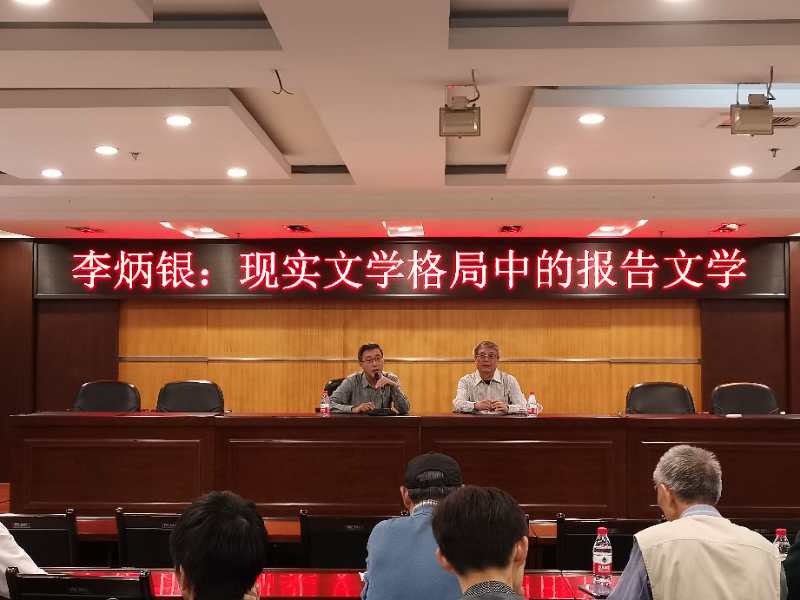 讲座中,李炳银谈到文学的现实处境:从过去人民群众对文学热情高涨并寄予很高期望,到现在文学风光不再,和外部大环境有关。社会发展到今天,人们满足精神生活需求的选择面变宽,游戏、动漫、网络文学风行,吸引了一大批年轻人,不像以前看小说、读诗歌是人们主要的消遣方式。但他也指出,反映现实的报告文学异军突起,突出重围,让人眼前一亮。作家走出书斋,走进现实生活,有真实的故事和有价值的题材、内容、人物,不用虚构挖空心思编造,写出的作品自然能得到人们的认可、喜欢。生活中鲜活的人、事、物,值得作家关注,要讲好中国故事,脚步要走得坚定,文学要参与其中。一个时代有一个时代的文学,报告文学就是我们这个时代的文学,前景广阔。