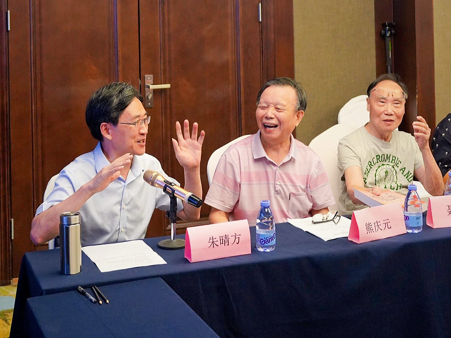 首发式现场,杂文家们在交流发言。