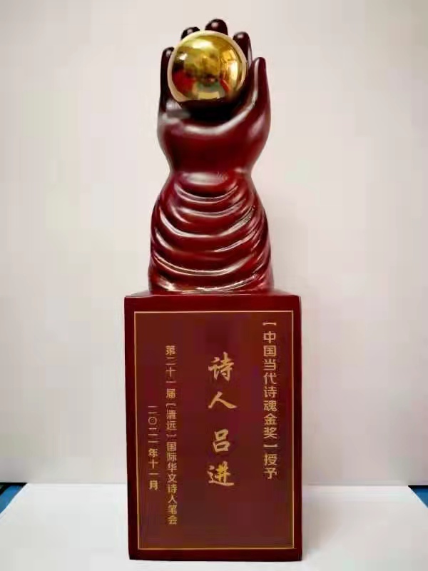 第21届(清远)国际华文诗人笔会2021年11月13日在云上举行,全国人大常委、中国作家协会副主席吉狄马加出席,笔会主席张诗剑(中国香港)致开幕词,常务主席峭岩(中国)主持会议。笔会授予吕进“中国当代诗魂金奖”,这是“中国当代诗魂金奖”第二次颁授给华文诗歌评论家,吕进致了答谢词。