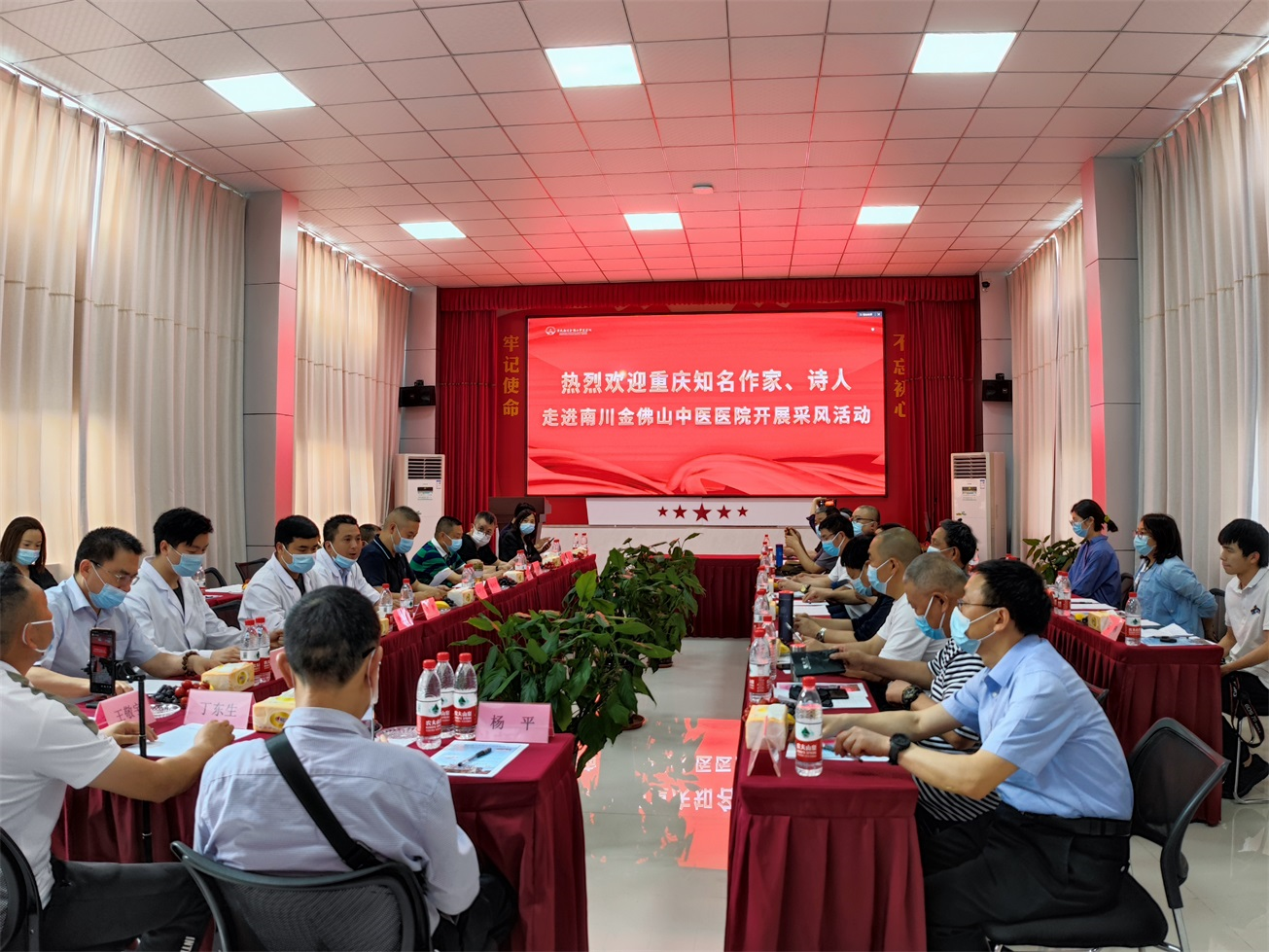 在中国金佛山中医药文化博览馆,大家聆听了南川中医药产业发展情况,参观了中药标本、中华医学精髓的经脉图等内容,对南川中医文化底蕴深厚,拥有良好的资源条件感叹不已。在参观完南川金佛山中医医院医疗设施,了解其特色诊疗项目后,作家、诗人们还与医院专家进行了座谈交流。