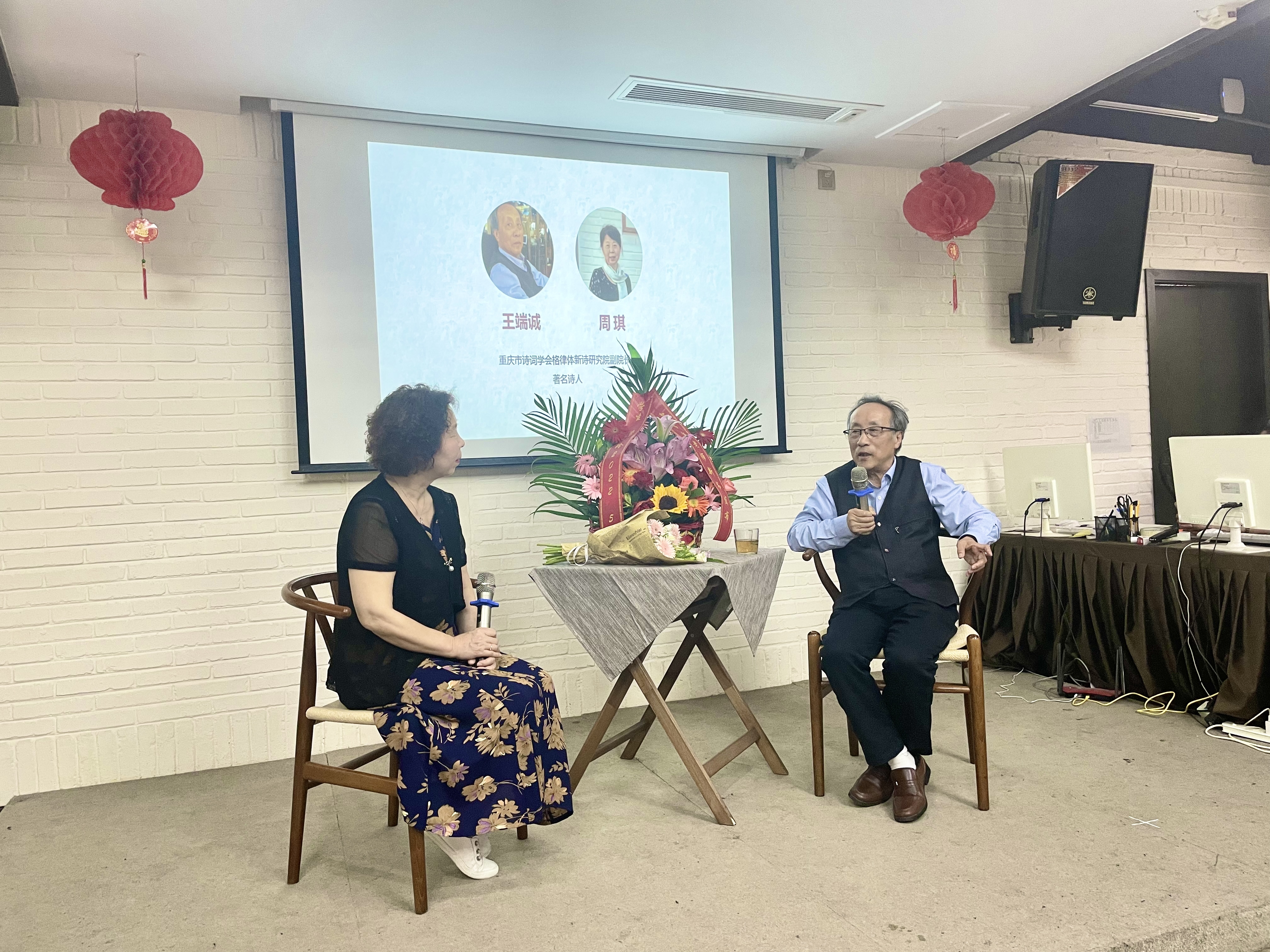“诗歌是用富有音乐性的语言,表达诗人的内心情感,从而引起读者强烈共鸣,给人以美感。”在分享一开始,王端诚就给诗歌下了一个定义。在近两个小时里,他又为大家分享了自己对于诗歌创作的思考。“我认为格律依然是诗歌音乐性的保证,是有区别于散文的独特表现形式。”在谈到新诗的格律与古体诗的区别时,王端诚认为,新诗以多音词为主构建诗行,与当代口语契合且加以雅化,更易于反映当代生活。随后,本次新书发布会还特选王端诚、万龙生等重庆诗人的诗作,由多位诗友现场进行朗诵,让诗友充分感受到诗歌经过二度创作所带来的无穷魅力。