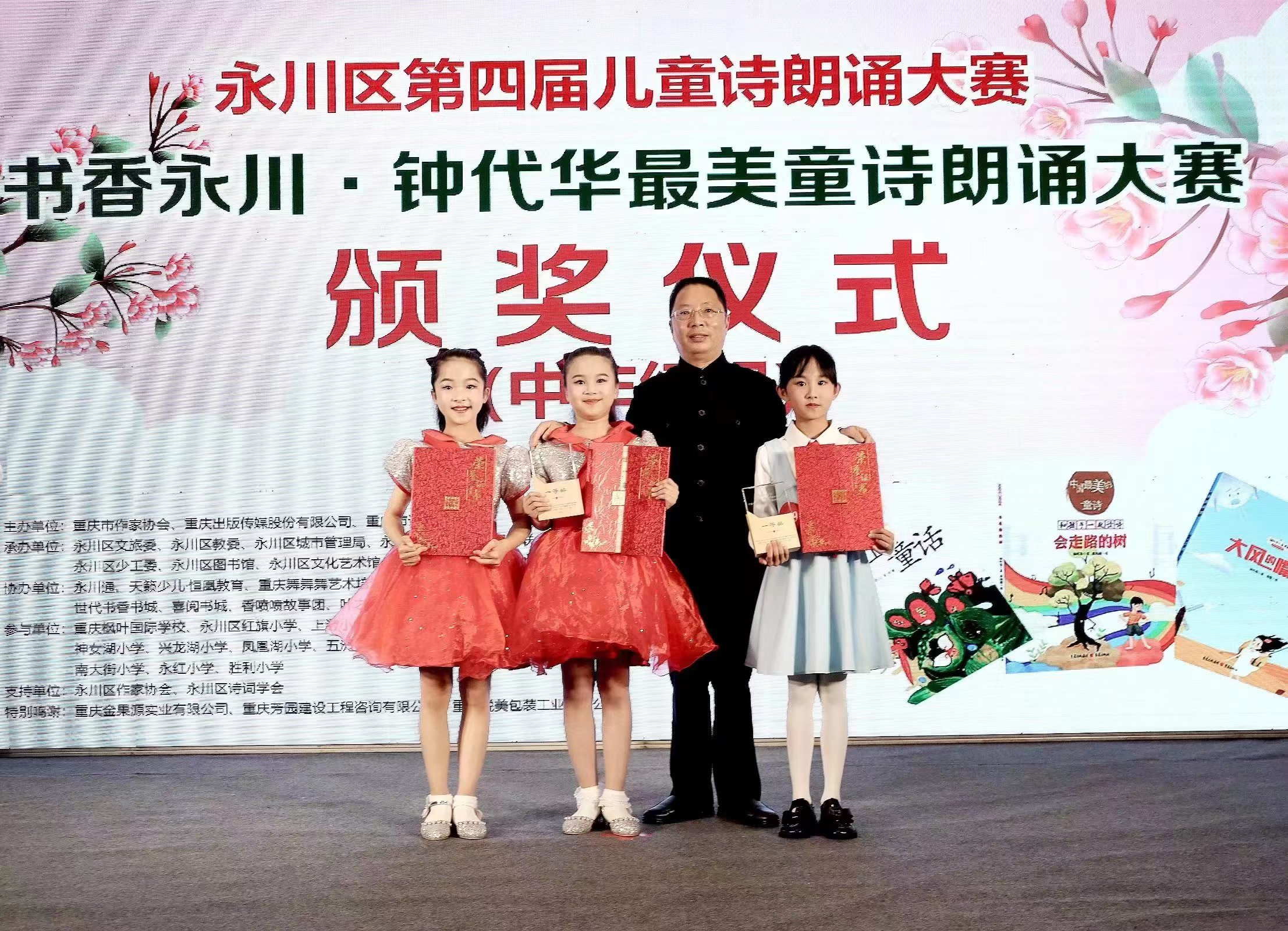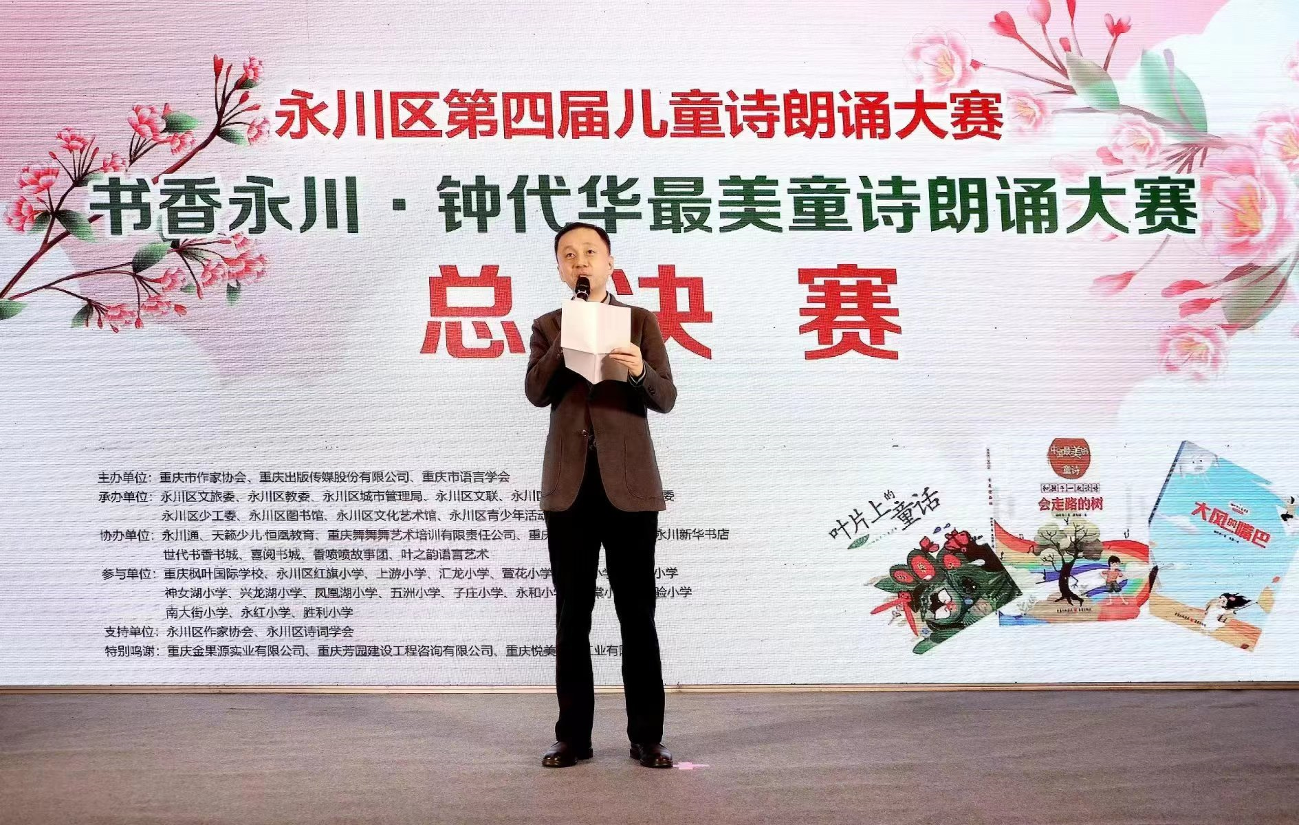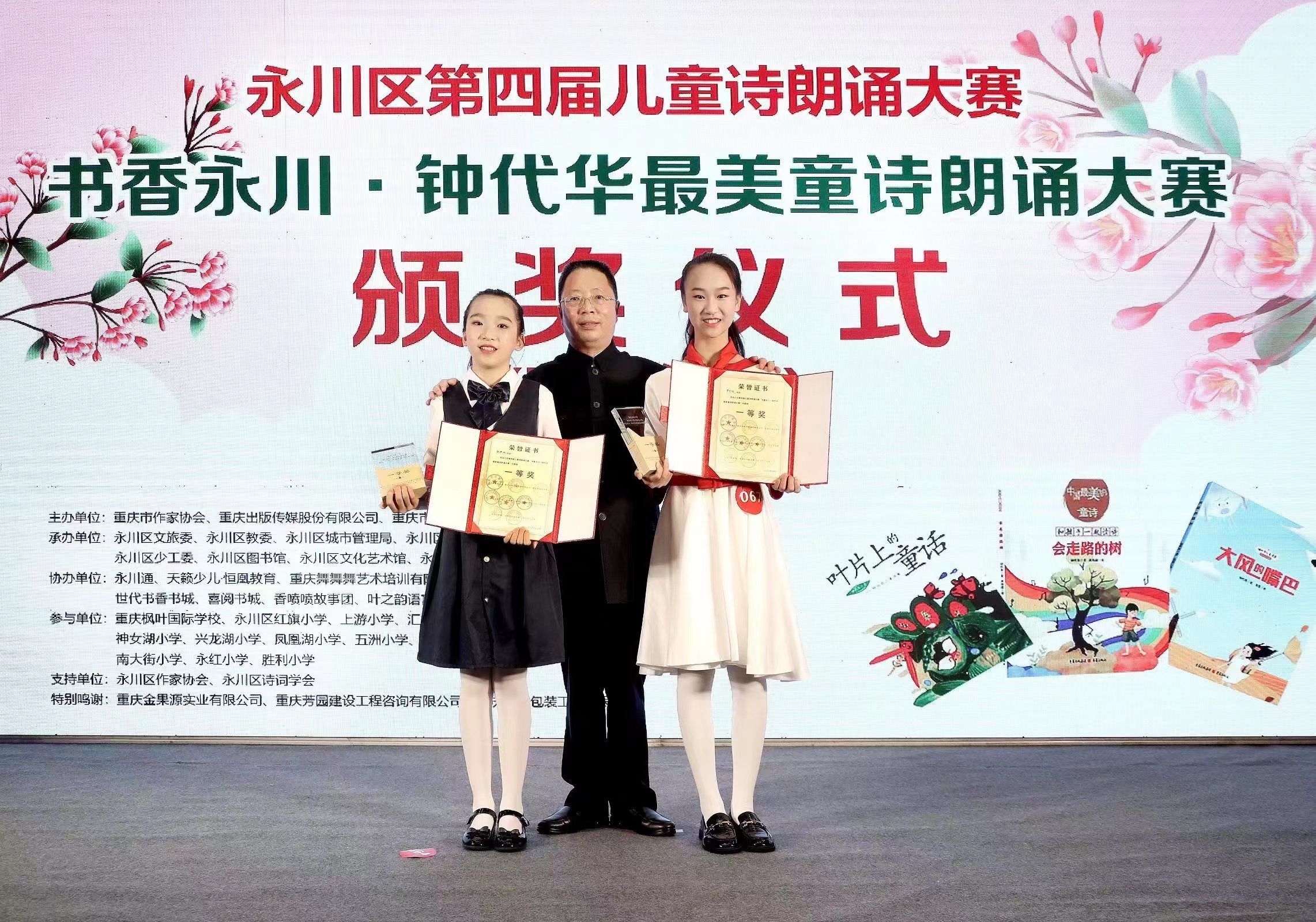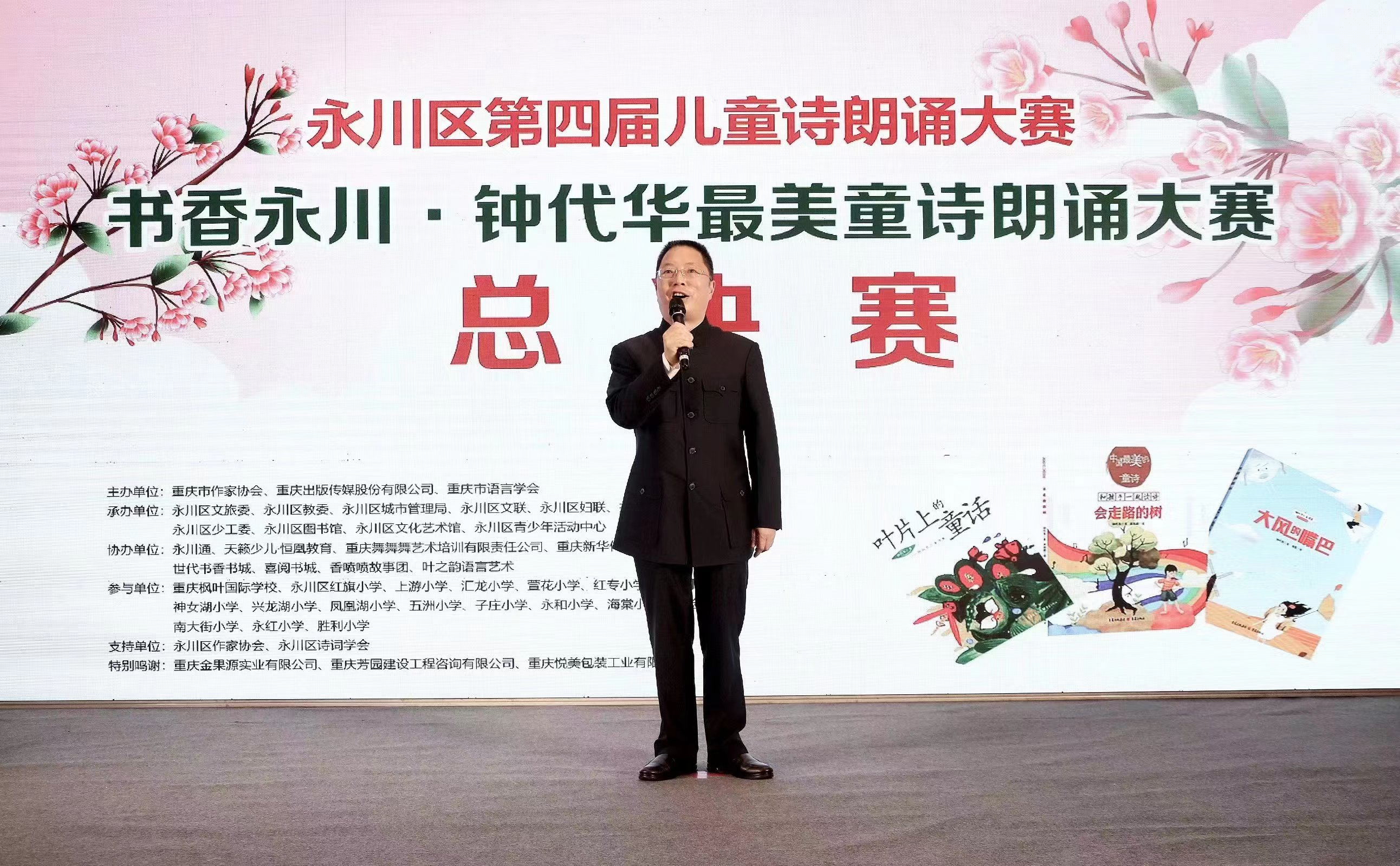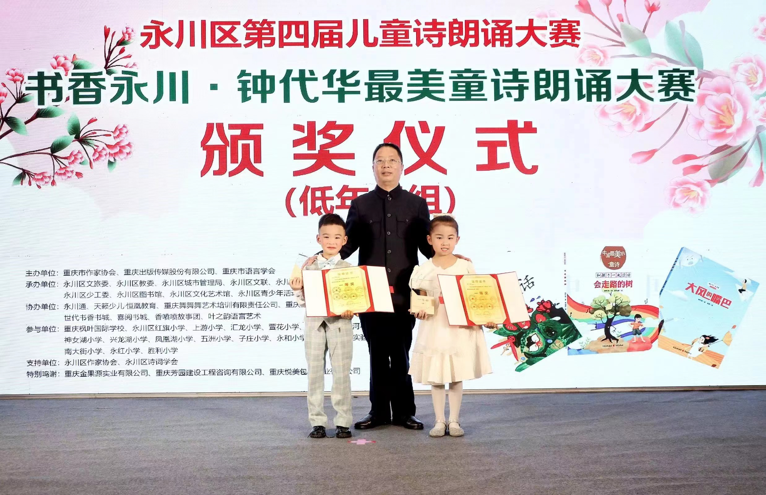 世界杯官网首页副主席、著名儿童文学作家钟代华为获奖选手颁奖并发表讲话。他表示,为推进全面阅读,建设“书香永川”,提升儿童诵读能力,扩大重庆儿童文学原创影响力,特举办了此次童诗朗诵大赛。通过此次活动,不仅让青少年充分领略童诗的语言美和情感美,更是提高了他们对语言的感受能力、表达能力和审美能力。