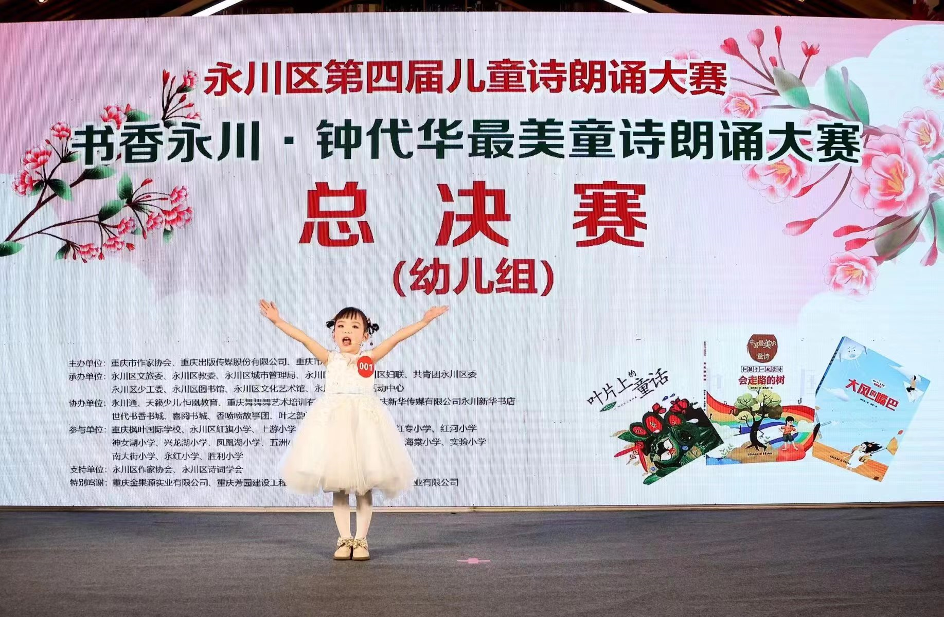 总决赛现场,选手们运用恰当的口头语言和肢体语言,绘声绘色地朗诵钟代华童诗绘本《叶片上的童话》《会走路的树》《大风的嘴巴》,将现场观众带入了天马行空的童话世界,也让人感受到了重庆儿童文学原创童诗的无穷魅力。