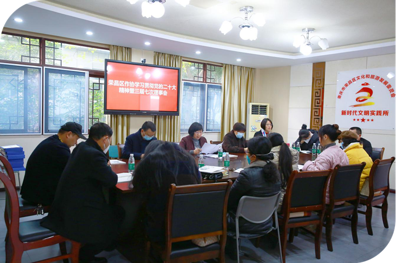 2023年1月12日,荣昌区作协在区宣传文化中心召开学习贯彻党的二十大精神专题会暨三届七次理事会,18名理事参加会议。