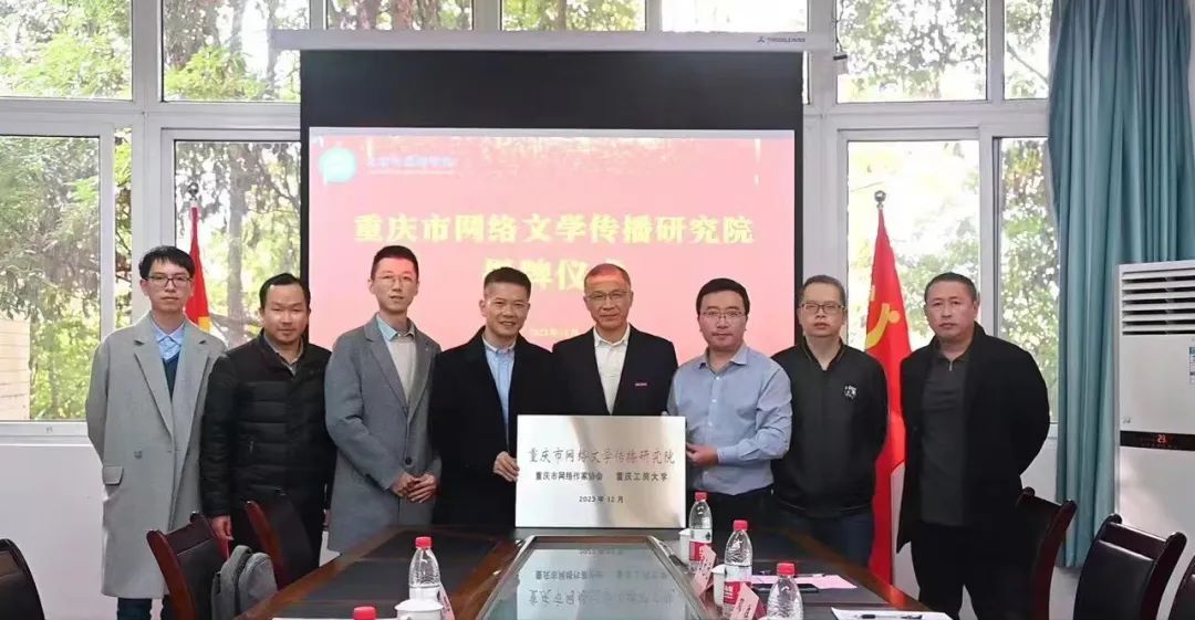 近日,由重庆市网络作家协会与重庆工商大学共建的重庆市网络文学传播研究院挂牌成立。重庆市网络作家协会主席袁锐、党支部副书记吴荻秋思,重庆工商大学文学与新闻学院院长殷俊、副院长邓伟、副书记程元元,以及汉文系、新闻系、广电系的老师参加揭牌仪式。