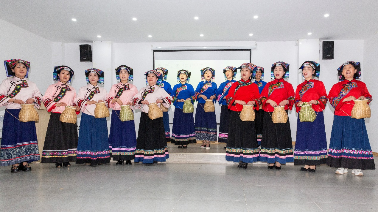活动下半场迎来文化重头戏。非遗传承人王志凌携团队呈现《土家族民歌与我的非遗创作》主题展演。这位行走的歌者肩挎手风琴,将数十年田野采风的传奇娓娓道来:在吊脚楼间寻访八旬歌叟,于火塘旁记录千年古调。当《妹心挂在哥心头》的旋律响起,手风琴声与土家山歌水乳交融,时而如阿蓬江激流奔涌,时而似廊桥月色缠绵。舍巴民歌队身着"西兰卡普"盛装,以《濯水情歌》《月亮挂在吊脚楼》等十首原生民歌,将土家儿女的劳作智慧、爱恋絮语化作跳动的音符。这些从田垄间生长、在炊烟中酝酿的歌谣,恰似穿越时空的文化信使,在观众心间激起阵阵涟漪。