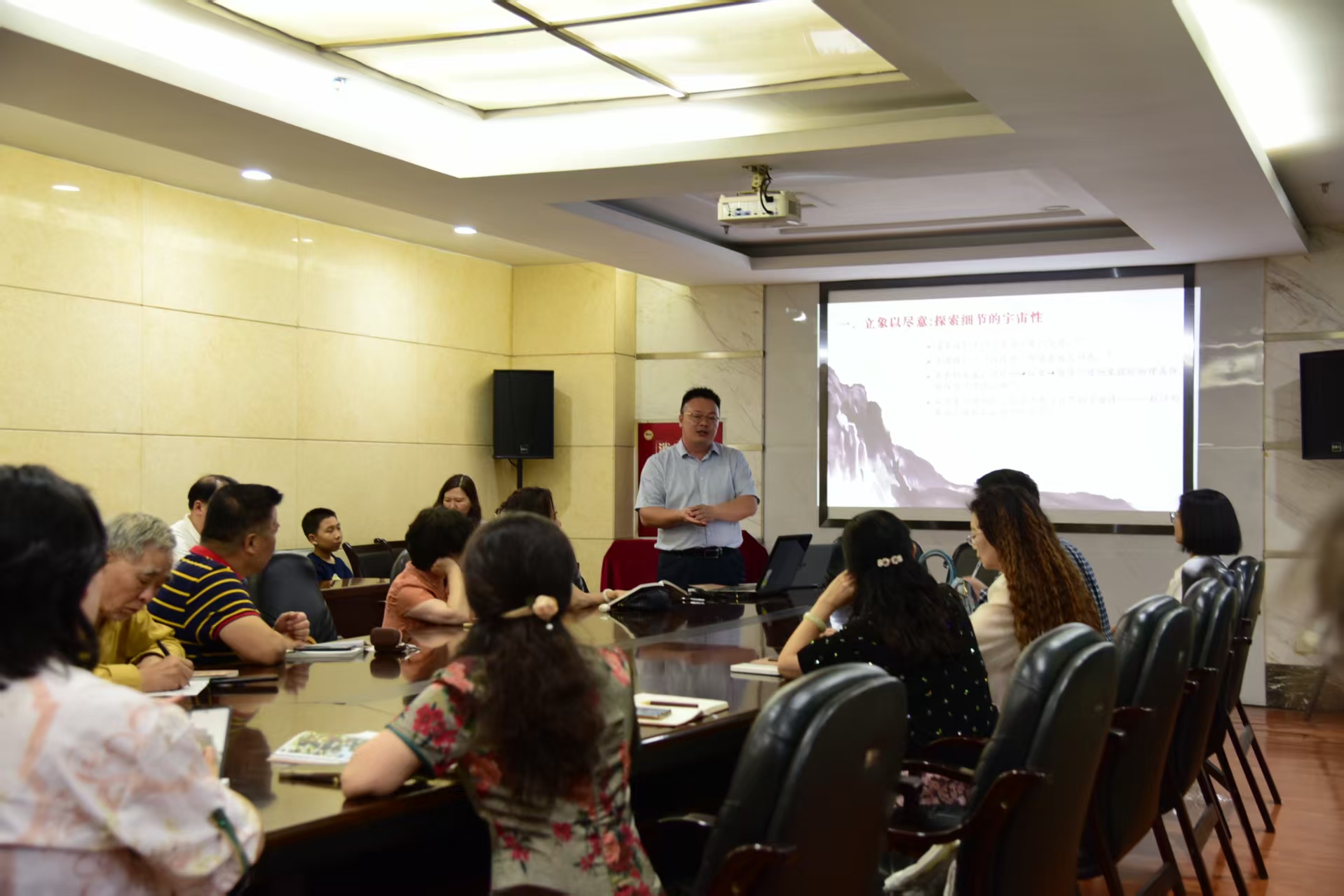 分享会上,周鹊虹以《在生活和工作中寻找诗意》为题向大家介绍了诗集的创作历程。他回忆起那些灵感乍现的瞬间,有的源于校园生活里的平凡日常,像学校地理园区那棵在南方少见的野柿子树,就成为他笔下《时光漫过红柿叶》的主角,在诗中承载着教育工作循环往复却又不断制造惊喜的寓意;有的则来自旅途的所见所感,贵州云舍村的稻田、普陀村的石径都在他的诗里留下了独特印记。在讲述创作背后故事的同时,他谈到对生活细致入微的观察以及内心深处的情感触动,是诗行不断延伸的核心元素。随后,周鹊虹深情朗诵了诗集中的部分作品,他用富有感染力的声音,将《总是淋雨的六月》里那充满宋词流韵、弥漫着清茶或红茶芬芳的六月意境,以及《春天,折一朵花的哀伤》中那被切割、扭曲、浸染的忧伤的腊梅花,淋漓尽致地展现给现场听众,让大家沉浸在诗歌营造的美妙氛围中。