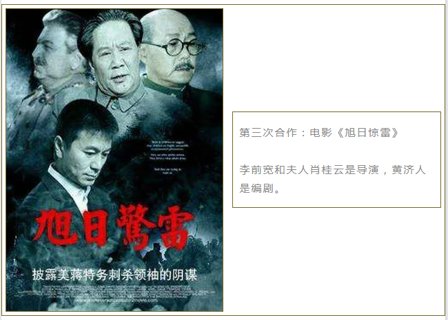 电影《旭日惊雷》是李前宽和我的第三次合作。他和夫人肖桂云是导演,我是编剧。这是我独立完成的第一个剧本,写的是上世纪五十年代,也就是新中国成立初期,对于毛泽东主席的政治保卫斗争,从写作的角度讲,这部电影是《决战之后》的续篇,在我的处女作《将军决战岂止在战场》的写作上,得到过国家机关部门的支持,有关档案30年解密后,他们又把保卫毛主席的几个案例交给我,这就是我能完成这个剧本的缘由。至于李前宽,他导演的《决战之后》不仅受到观众的好评,而且得到机关部门的认可,尤其是他凭借这部影片获得第二届中国电影金鸡奖最佳导演奖提名,这就为他被机关部门制定为《旭日惊雷》的导演奠定了基础。当然,虽然是命题作文,但是无论是主题还是艺术方面,都同样大有文章可做,所以,李前宽不仅欣然接受指令,而且出色地完成了任务。