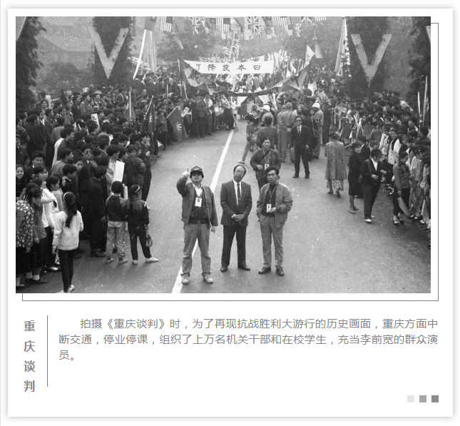 是的,在成功面前,李前宽总是不会忘掉那些没有让他失败的人。他是全国政协的老委员,我也是全国政协的老委员,而且都安排在文艺组,这样,我们就有了愈加频繁的交流机会,而几乎每一次见面,他都会提到重庆。提到在拍摄《决战之后》时,为了还原抗战时期震惊中外的昆仑关大战,重庆方面出动了驻军、武警以及公安干警总数高达千人,在三天之内由他调配;提到拍摄《重庆谈判》时,为了再现抗战胜利大游行的历史画面,重庆方面中断交通,停业停课,组织了上万名机关干部和在校学生,充当他的群众演员。李前宽告诉我说:“重庆方面的场面如此盛大,作为导演我除了由衷感激,更不能有半点怠慢,于是请示长影火速增援,当我看见连夜出发翻山越岭终于抵达重庆的17辆上世纪40年代的美式吉普车时,不觉沾沾自喜洋洋得意,然而,第二天中午,烈日当头,当我在万人游行队伍中看见了身穿长衫手舞小旗的市委市政府领导时,我这个东北汉子也禁不住泪流满面,无地自容。”