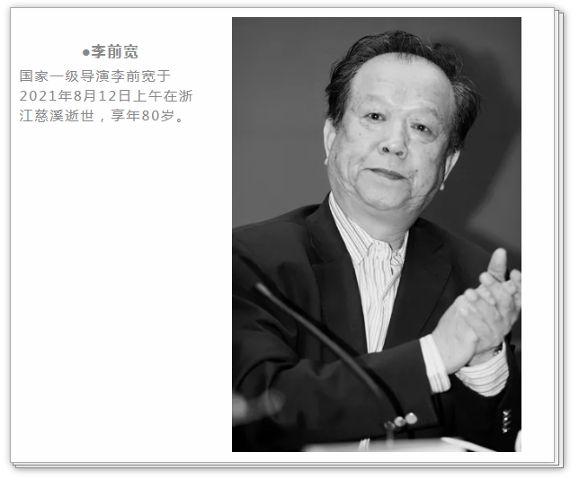 有道是好事不过三。过去不相信,现在相信了。前不久,重庆方面有个名叫《大彭始祖》的电影剧本,编剧是我的朋友,我是这部电影的文学顾问,重庆方面委托我与李前宽联系,邀请他担任这部电影的导演,第一个电话打过去,他与肖桂云正在台湾拍戏;第二个电话打过去,他们已回到北京,李前宽希望能尽快读到剧本;第三个电话打过去,李前宽说剧本有硬伤,没有中心故事,他现在要去浙江,等那边的事情结束后,他立马直奔重庆。关于剧本的修改意见,他会好好地与我们商议。可是,就在这样的时候,李前宽突然走了,当我回过神来,才知道我已痛失良师,痛失益友,痛失不该失去的一切。
